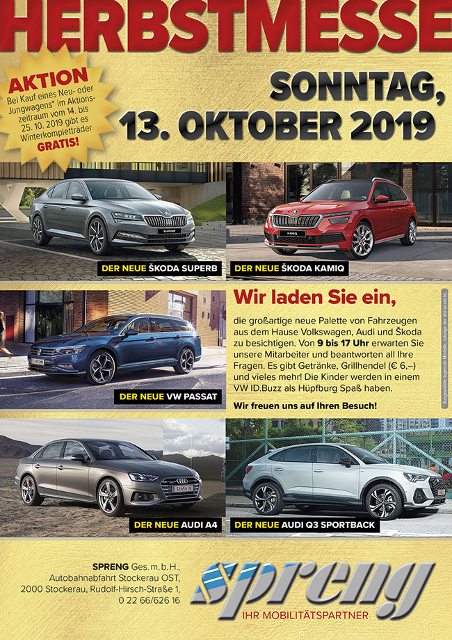 Autosonntag der Stockerauer Autohändler, Plakat, Inserat